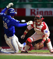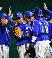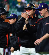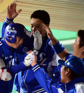2014.05.07 21: 54역전 희생타점 올리고 동료들에게 축하받는 백상원