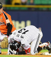 2014.05.07 20: 22'송구에 머리 맞은 백창수 상태 체크하는 LG'
