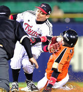 2014.05.07 20: 24도루 성공하는 이용규,'송구가 코앞까지 왔네'