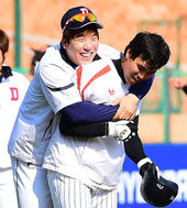 2014.05.08 16: 58미소지으며 김문호 와락 껴안은 김현수,'내가 좋아하는 친구~'