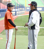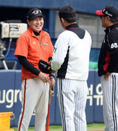 2014.05.08 17: 04김종모 코치,'조계현 대행! 어제 연장승부는 저희가 웃었네요'