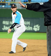 2014.05.08 20: 31박종윤,'1루주자 라인아웃 아닌가요?'