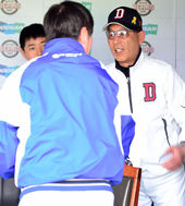 류중일 감독과 반갑게 인사 나누는 송일수 감독
