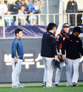 2014.05.10 18: 25문규현 부상 지켜보는 김시진 감독