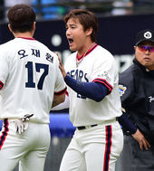 2014.05.11 16: 086⅓이닝 1실점 오재영,'동료들의 축하를 받으며'