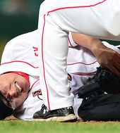 2014.05.13 22: 04타구 맞은 전유수,'표정이 말해주는 고통'