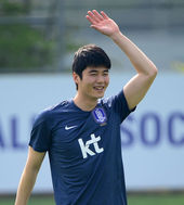 2014.05.13 18: 23기성용,'하회탈 미소로 몸 풀기'