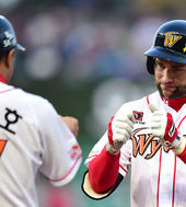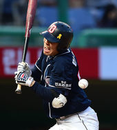 2014.05.14 19: 27민병헌,'몸에 맞는 볼로 출루'