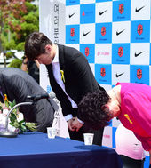 2014.05.14 14: 25박지성,'연인 김민지의 등장에 당황, 고개숙여 인사?'