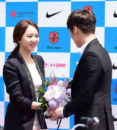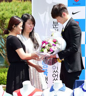 2014.05.14 12: 35박지성 연인 김민지,'박지성에게 꽃다발 주고 쑥스러운 미소'