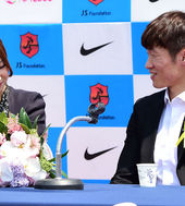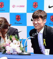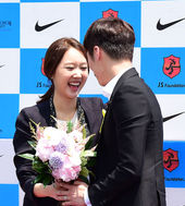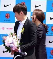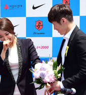 2014.05.14 12: 25박지성 기자회견에 깜짝 등장한 연인 김민지