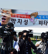 2014.05.14 11: 24박지성 기자회견,'연인 김민지의 플래카드'