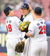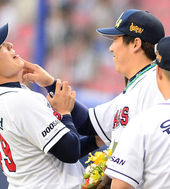 2014.05.16 18: 47민병헌-유희관, '김현수, MVP 부럽지?'
