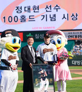 2014.05.17 17: 22100홀드 달성 정대현,'최하진 롯데 대표이사와 함께'