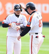 2014.05.18 14: 38강석천 코치,'장운호! 시즌 첫 안타가 타점이네'