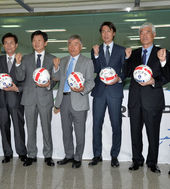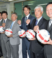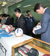 2014.05.20 13: 24홍명보 감독,'역대 대표팀 감독들과 함께 축구공에 사인하며'