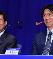 2014.05.20 13: 40홍명보 감독,'역대 감독들의 아낌없는 응원에 환한 미소'