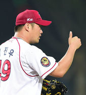 2014.05.20 21: 03김진우,'야수들 향해 엄지 번쩍'