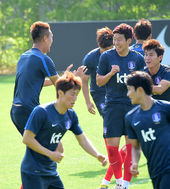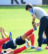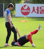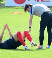 2014.05.22 16: 38홍명보 가독,'이근호 다리잡고 쭉쭉!'
