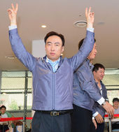 2014.05.22 12: 26투표소 도착한 무한도전 유재석,'기분좋은 미소~'