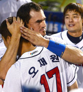 역전 홈런 날린 이대호,'단상 인터뷰 쑥스러운데~'