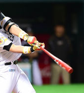 2014.05.23 19: 13한신과 교류전서 안타 날리는 소프트뱅크 이대호