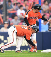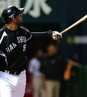 2014.05.23 18: 32'한신과 교류전' 벌이는 이대호,'첫 타석은 내야 땅볼'