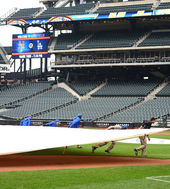 방수포 덮이는 뉴욕 메츠 시티 필드