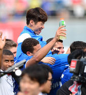 2014.05.24 16: 07헹가래 받는 박지성,'그동안 행복했습니다'