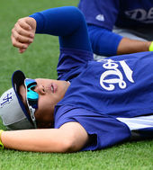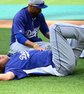 2014.05.24 07: 09류현진,'누워서 스트레칭해요'