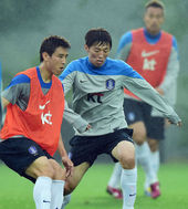 2014.05.25 17: 49기성용-손흥민,'우천 훈련, 정말 힘드네'