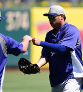 2014.05.26 01: 00류현진,'채드! 내 볼 잘 받아줬어!'