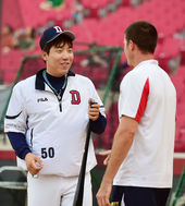 2014.05.29 16: 59김현수,'필에게 자신의 배트를 선물!'