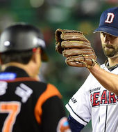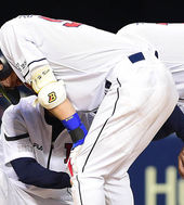 타구 맞은 김재호,'너무 아프다'