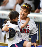 2014.05.30 18: 49홍성흔,'시구 마친 딸 홍화리 안고 미소'