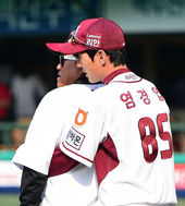 2014.05.30 17: 45다정하게 이야기 나누는 김무관 코치-염경엽 감독