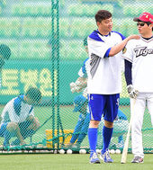 2014.06.03 16: 51인사 나누는 김종국 코치-채태인