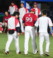 2014.06.05 20: 19KIA 브렛 필,'배영수 투구에 손가락 맞고 교체'