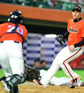 2014.06.05 19: 41손아섭, '폭투 틈타 홈에서 세이프'
