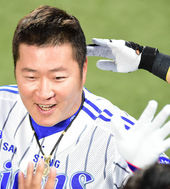 2014.06.05 19: 49솔로포 날린 최형우,'쓰담쓰담~'