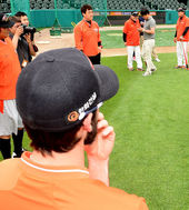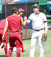 2014.06.06 15: 08선수단과 인사 나누는 조인성, '1군 전격 합류'