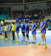 2014.06.06 12: 28한국-노르웨이 여자 핸드볼 경기 전 세월호 희생자들을 위한 묵념