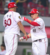 2014.06.10 22: 26김태군-김진성,'잘 막았다'