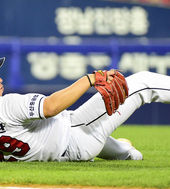 2014.06.10 20: 35마음 급한 유희관,'번트 타구 더듬더듬'