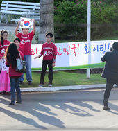 2014.06.11 21: 26홍명보호 환영 플래카드 앞에서 태극기 들고 대한민국!