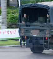 삼엄한 분위기 속에 세워진 홍명보호 환영 플래카드