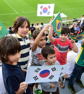 2014.06.12 10: 29태극기를 흔드는 브라질 현지 아이들