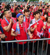 2014.06.18 07: 21거리응원 펼쳐지는 영동대로,'아침 와도 식을줄 모르는 응원 열기'