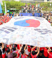 2014.06.18 07: 14'대형 태극기 휘날리는 영동대로'(한국 러시아)