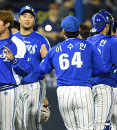 2014.06.20 22: 37류중일 감독,'나바로 연타석 홈런 축하해'